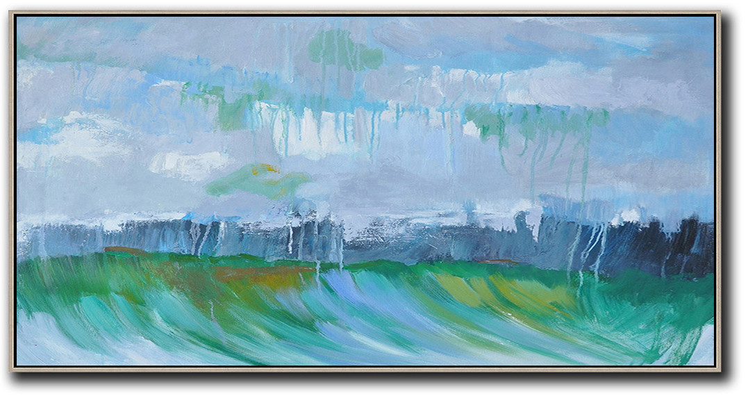 Hand-painted large Panoramic Abstract Landscape Painting on canvas.