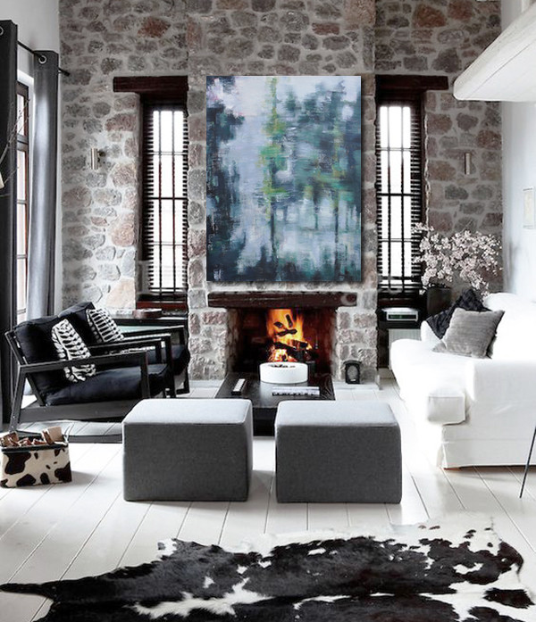 Hand-painted vertical abstract landscape oil painting on canvas.